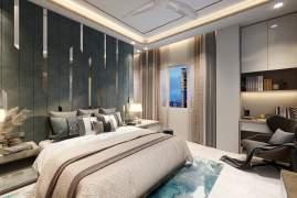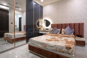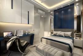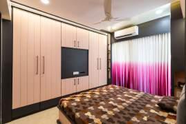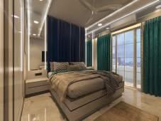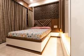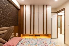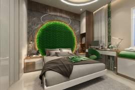 Bedroom designs include a sleek wall-mounted wardrobe with a mirrored TV unit, a concealed fullheight wardrobe in the parents' room, and a work-friendly master bedroom with an integrated study table.