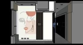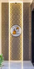 The entrance logo wall as the hidden door for the toilets