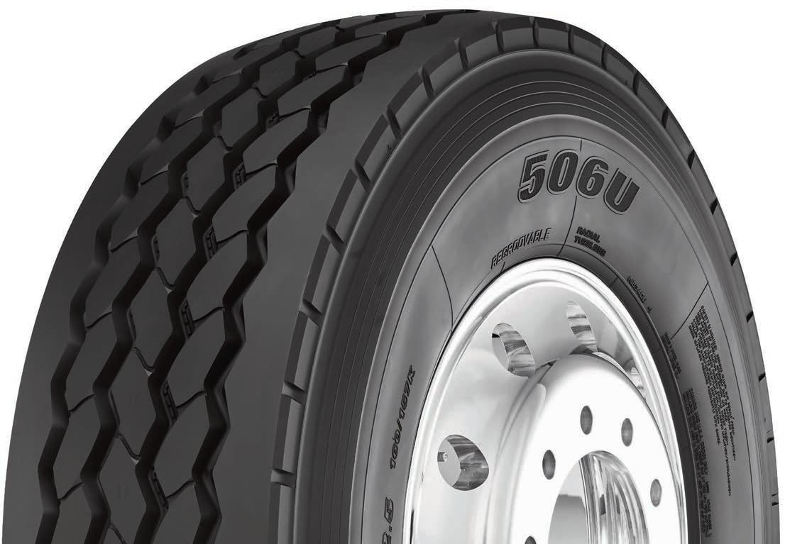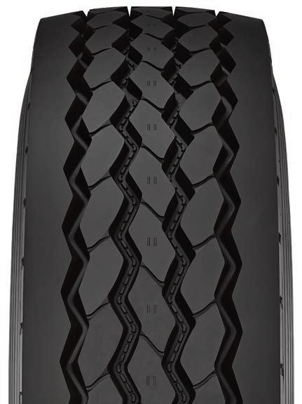 • Des améliorations à l’ensemble ceinture et un profil de carcasse évolué visent à réduire l’usure irrégulière typique des roues directrices.