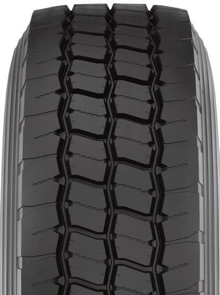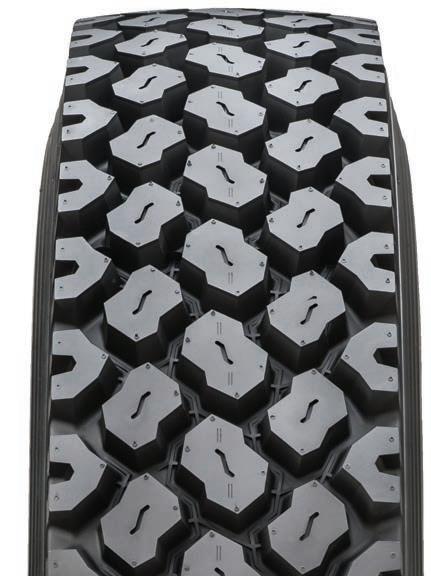 • High Elongation Compound raises resistance to steer axle tread tearing and cutting.