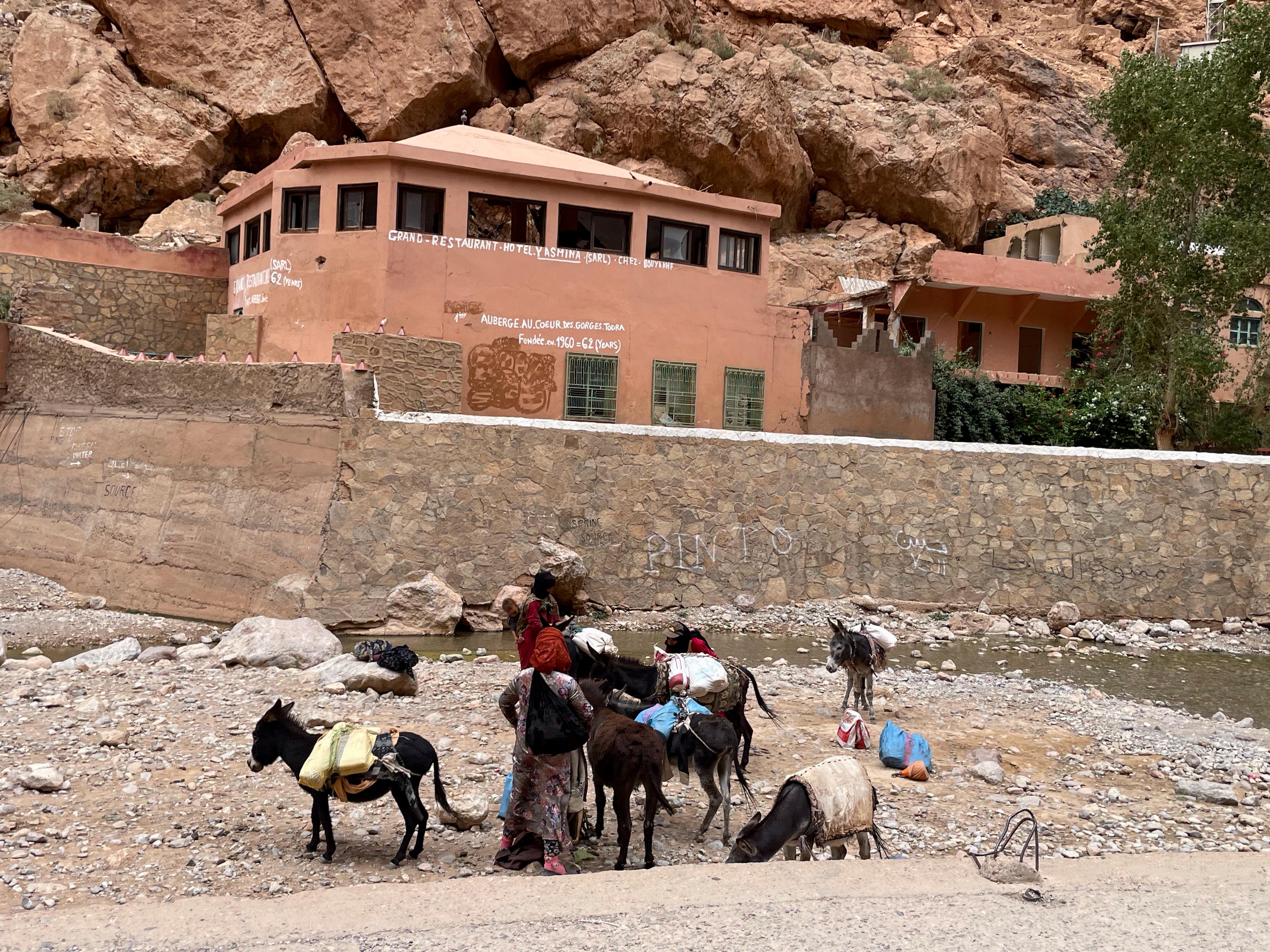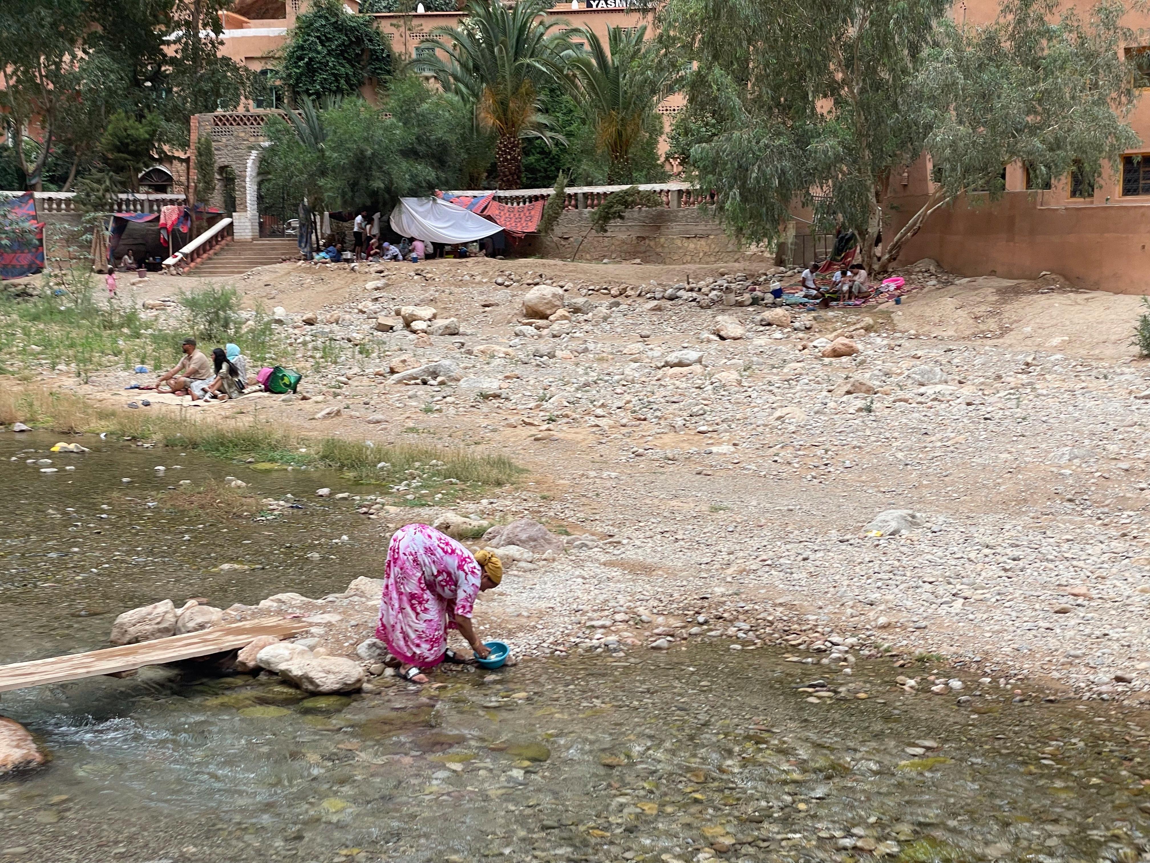 The Todra river is like an oases. After visiting Merzouga and Erg Chebi desert, arriving at the Todra gorges is refreshing. In the desert, there weren’t any women, only us foreigners. Here, where the water flows, there are many women.