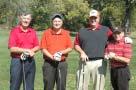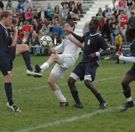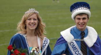 (Above) Jennifer Witt and Nick Parsons take the royal march after being crowned during Homecoming ceremonies. (Right) AllConference defender Benny Hanaphy takes on three opponents. (Inset) Ryan Touchton ‘62, Bryan Jacobs ‘62, Paul Touchton ‘61, and Roger Lowry ‘66 team up in the Homecoming Tournament.