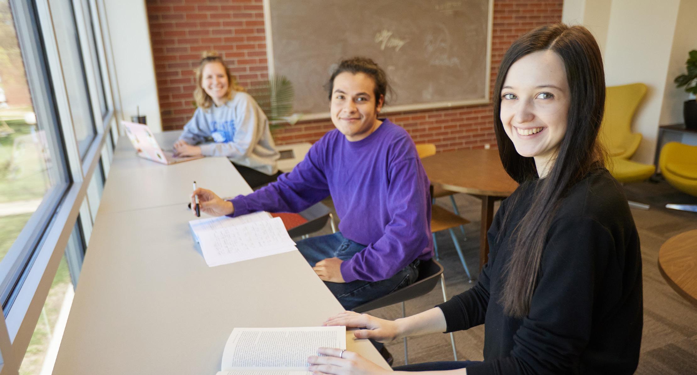 (above) Julie Tremaine, Josh Santiago, and Emma Peters find good spaces to study in the ARC at Levitt.