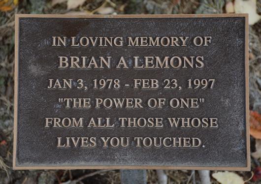 A tree just north of Hulitt Hall is dedicated to the memory of Brian Lemons. It's a tree that YC students and employees have walked by hundreds of times. The plaque reads “In loving memory of Brian A Lemons, Jan 3, 1978 - Feb 23, 1997, The Power of One, From all those whose lives you touched.” The tree stands in remembrance but also to share the story with future generations. Brian’s life was cut short by a tragic car accident during his freshman year at York College.
