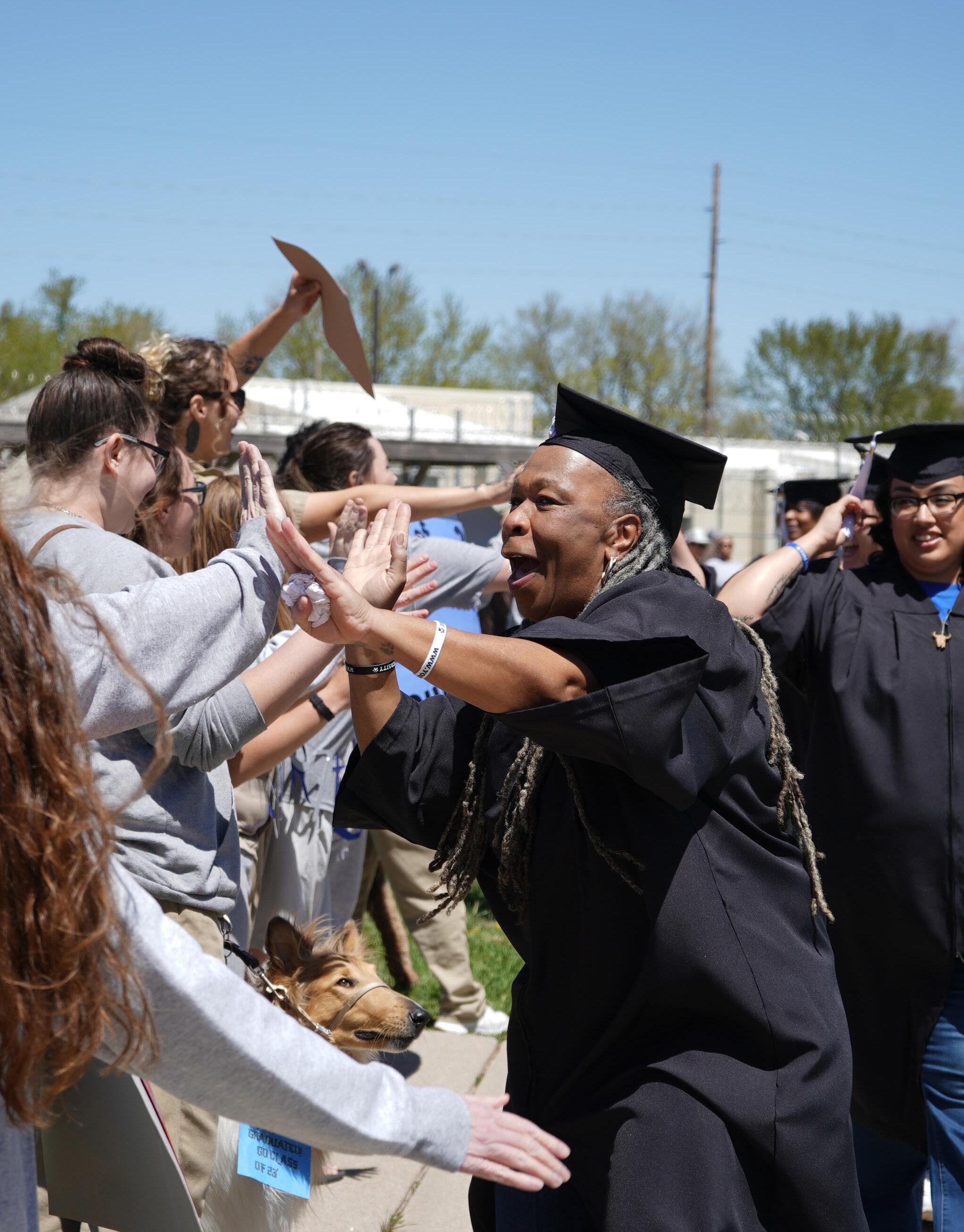 t On the Cover: Jo Helen Robertson-Williams and her fellow graduates are celebrated as they walk across the courtyard of the Nebraska Correctional Center for Women. (photo by Eryn Conyers)