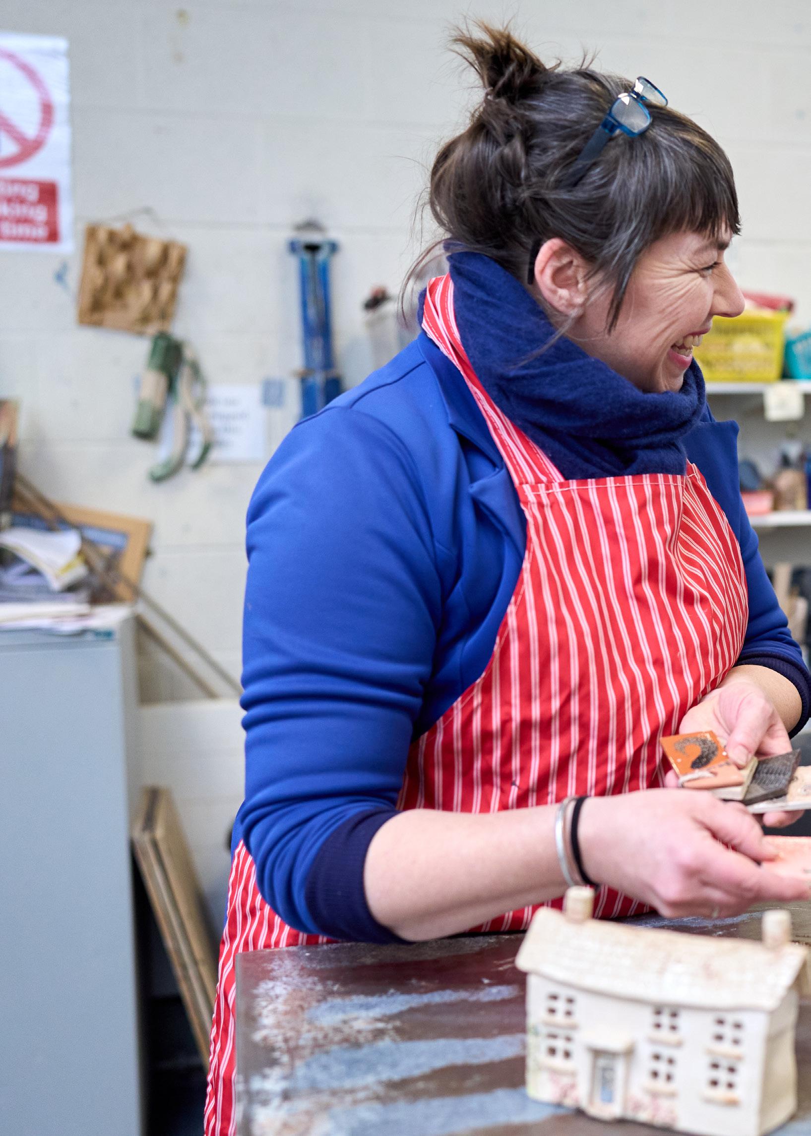 We have an array of specialist facilities including: a design studio with pattern cutting tables; Apple Mac suites; pattern CAD room with a Gerber system for digital pattern generation; specialised classrooms; machine room with industrial sewing machines and presses; print room; art gallery space; photography studios, purpose-built prosthetics workshop and hair and make-up studios. Other workshops include metal with foundry for blacksmithing and welding bay; jewellery with a micro-welder and enamelling kilns; wood with an industrial lathe and large benches; ceramics with wheels for throwing and both electric and gas kilns and sculpture room with facilities for plaster, concrete and rubber.