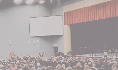 •Los estudiantes que pasan al 8.º grado reciben presentaciones de preinscripción y cursos electivos.