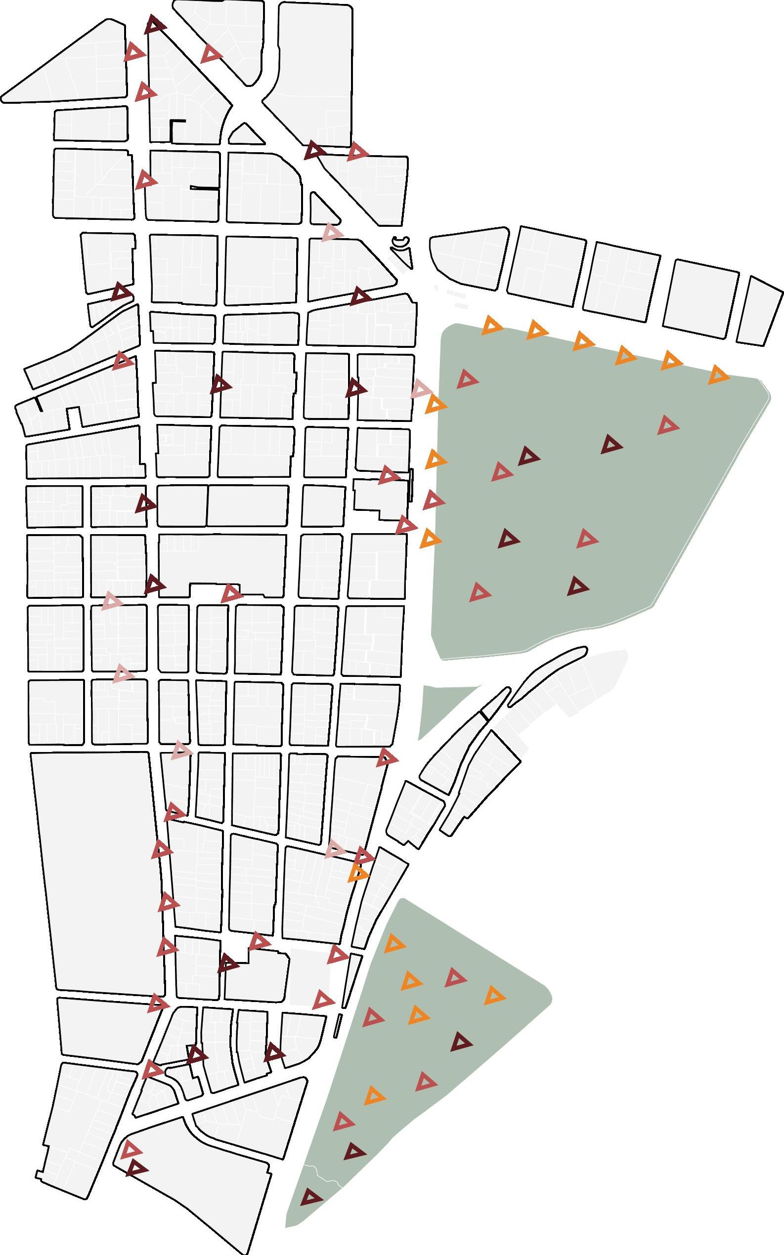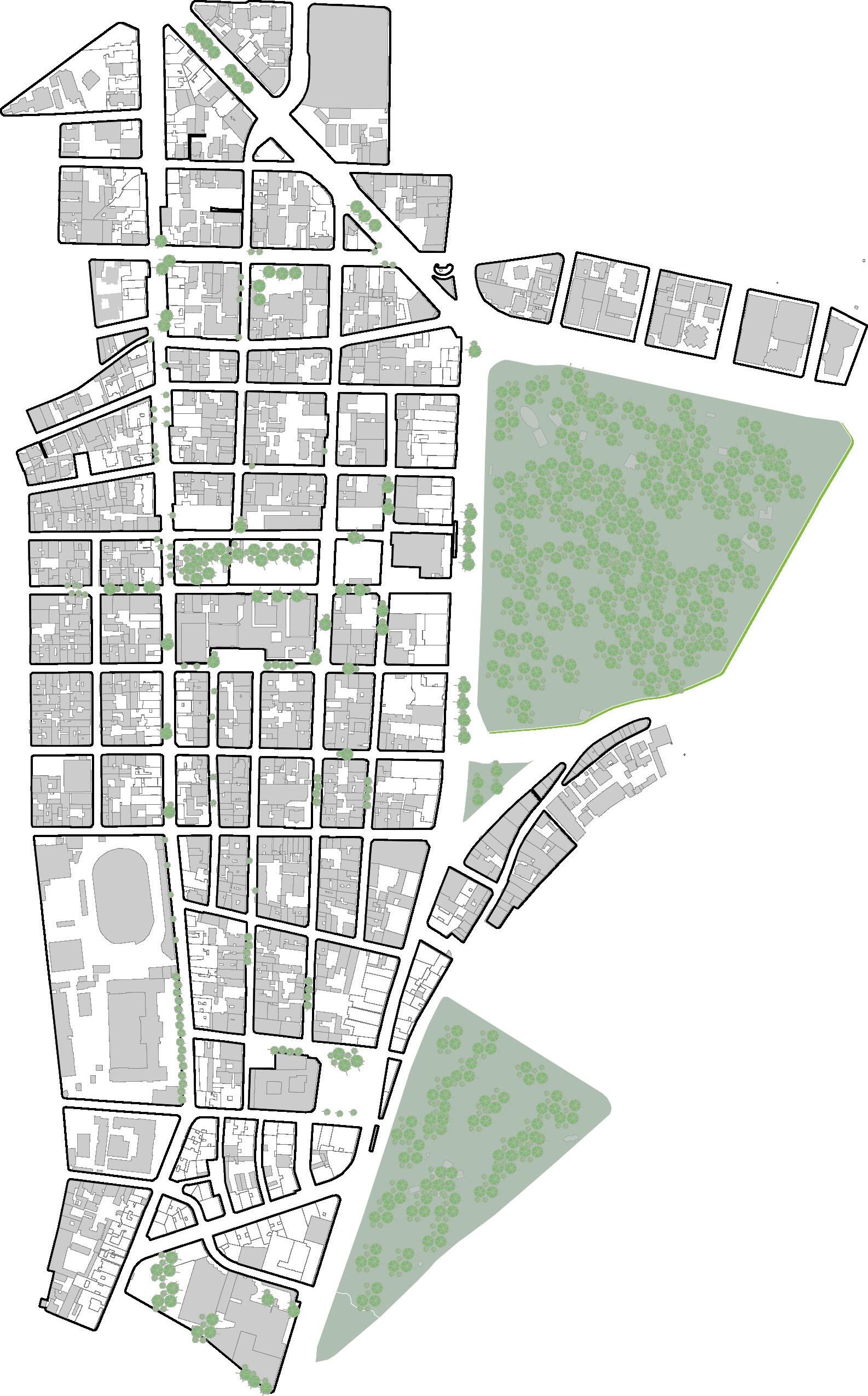 El 64.5% de las calles en el barrio son espacios donde la malla urbana está rota. Lo que supone una oportunidad para el diseño espontáneo.
