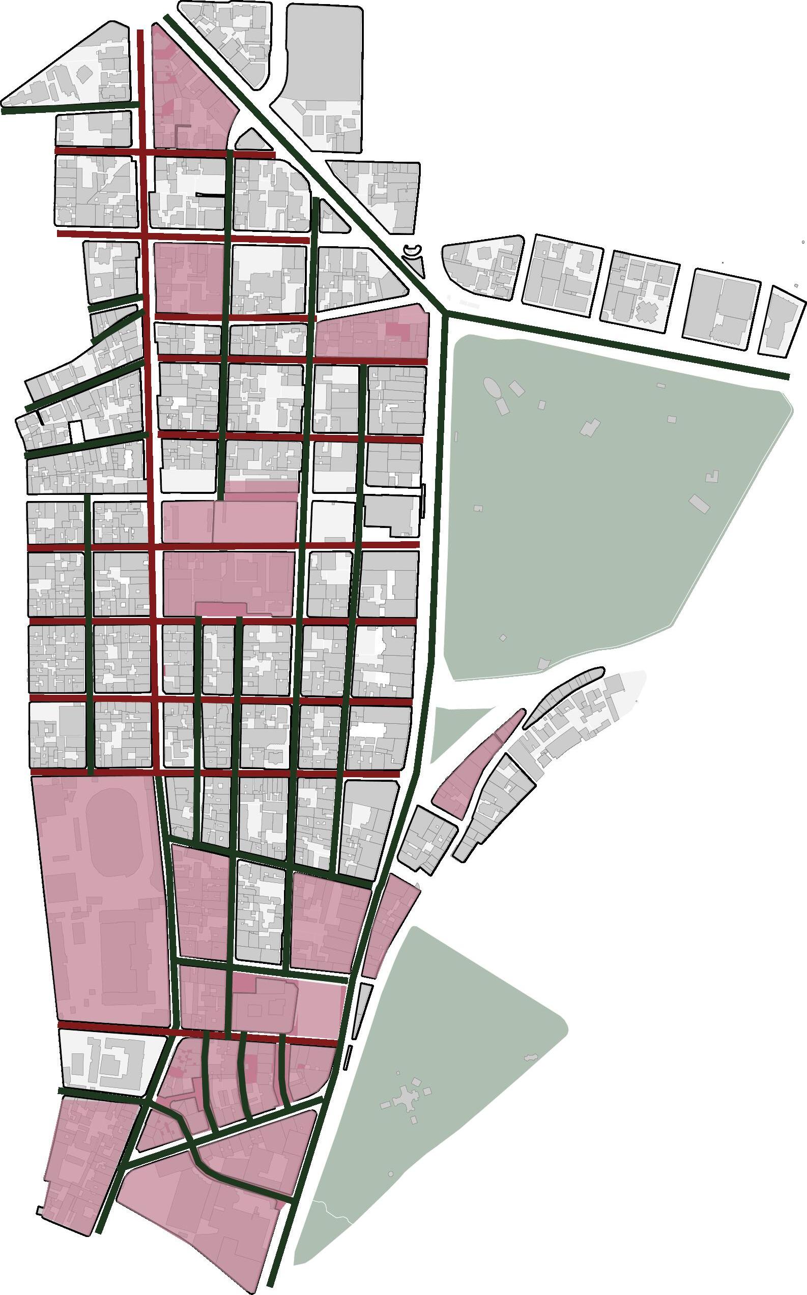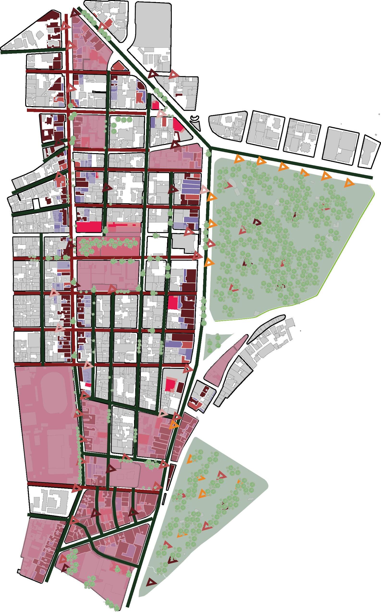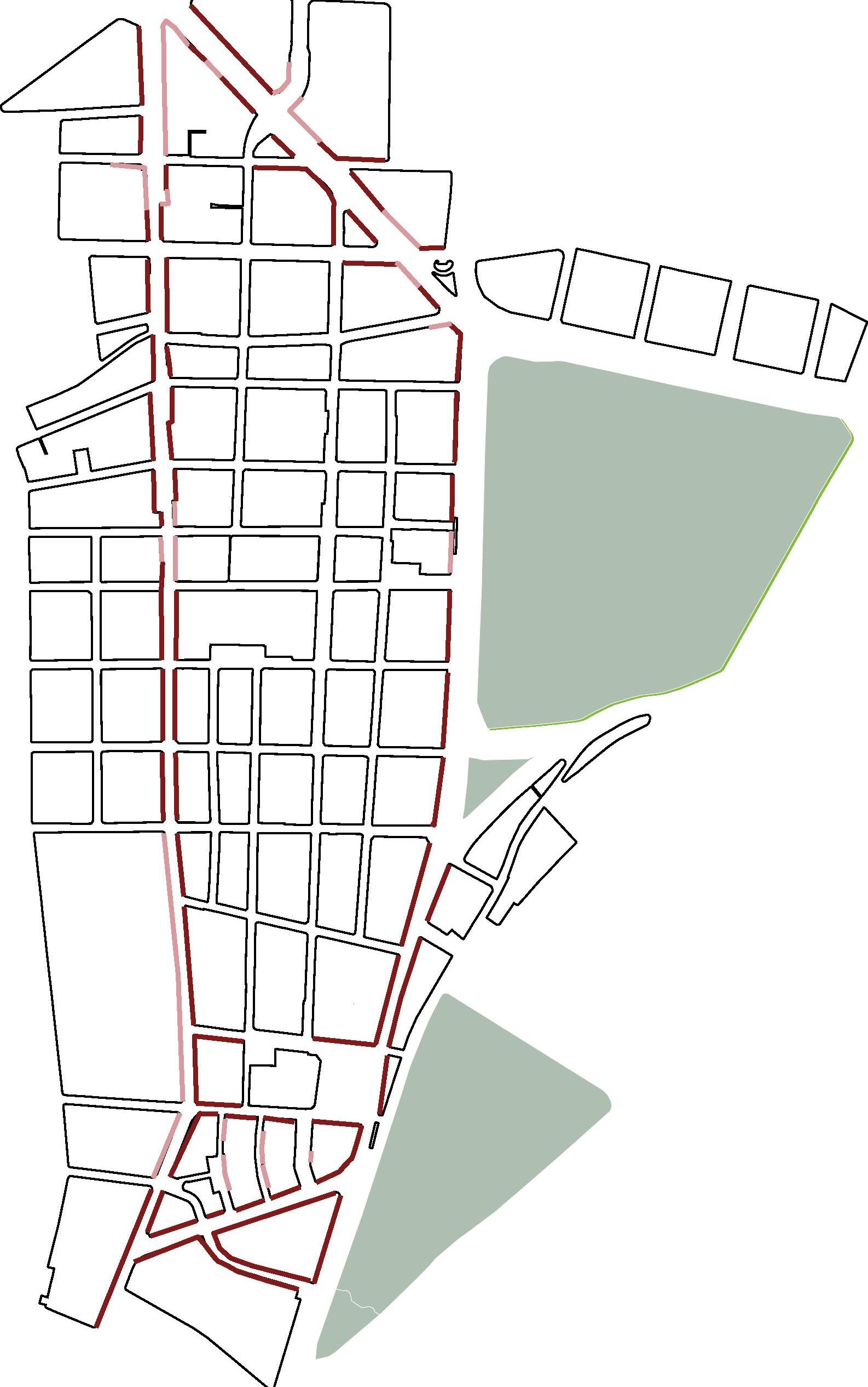 -Romper la malla urbana para crear límites (calles) mas difusos con el objetivo de re-diseñar los espacios nuevos de una manera más espontánea.
