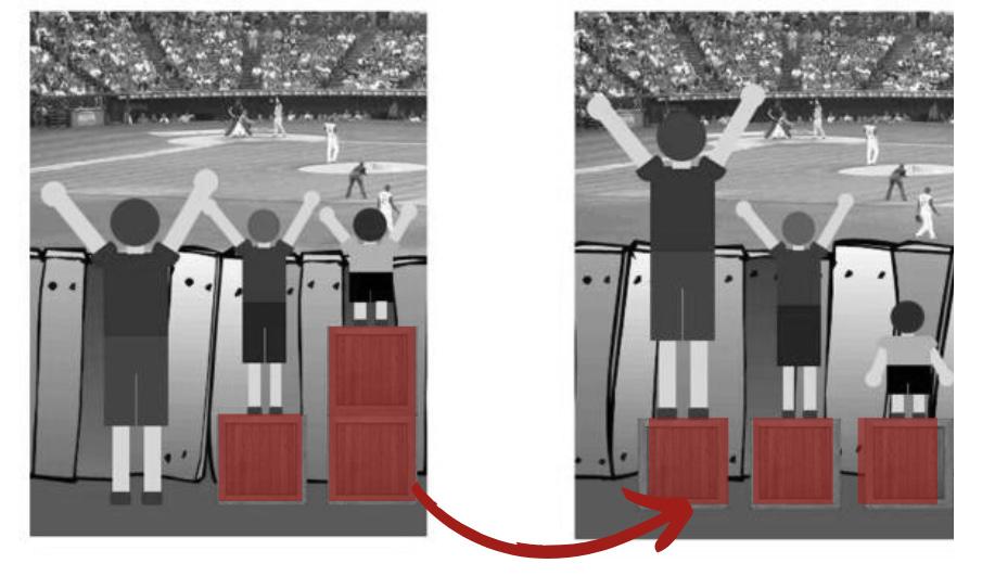 La igualdad de oportunidades no habla sobre las distancias que separan las condiciones sociales tanto así que si la distancia es muy grande, los individuos nunca podrían llegar a atravesarlos a excepción de algunos héroes.