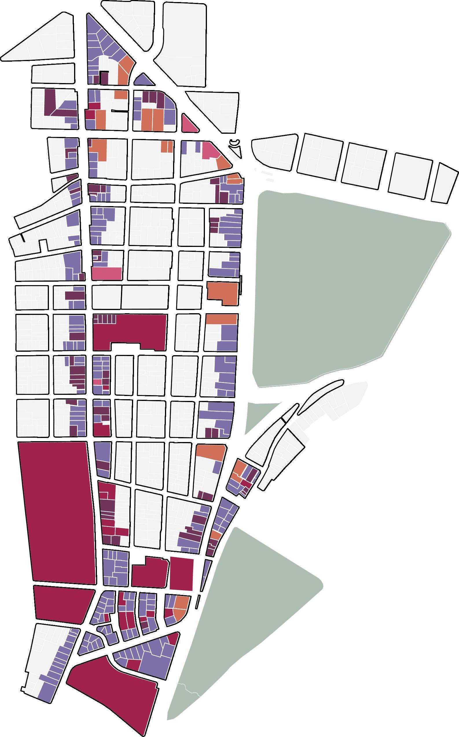 La zona demarcada representa el espacio en donde existe problemas arquitectónicos, socio-económicos y ambientales. sin embargo, es un lugar potencial para la revitalización de la zona, pues permite un recuperar ciertas edificaciones abandonadas, en donde podemoscrear arquitectura no conclusa y darle un mayor protagonismo a la naturaleza y dar prioridad a las personas que no tienen un empleo estable.