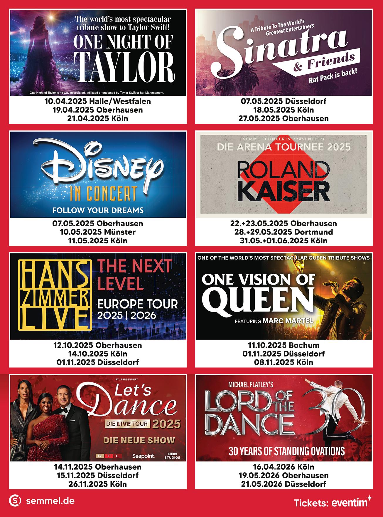 04.01.2025, 20 Uhr, Historische Stadthalle, Wuppertal 22.01.2025, 20 Uhr, Mitsubishi Electric Halle, Düsseldorf 23.01.2025, 20 Uhr, Palladium, Köln 04.02.2025, 20 Uhr, Lichtburg, Essen 22.03.2025, 20 Uhr, Mercatorhalle, Duisburg Tickets unter highlight-concerts.de und an allen bekannten VVK-Stellen.
