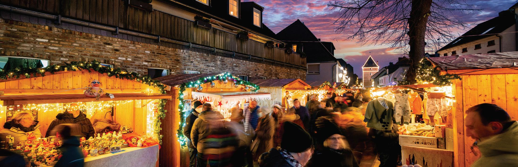 Das „Ratinger Adventsleuchten“ bietet als winterliches Stadtfest eine Vielfalt an Erlebnissen für Groß und Klein – liebevoll organisiert von zahlreichen Akteuren. Höhepunkt ist der erste Advent: Die Besucher erwartet weihnachtliche Live-Musik, das beliebte Kasperletheater, eine Bastelwerkstatt, Eisbildhauerei, Christmas Karaoke und Walking Acts. Der Arkadenhof zeigt sich beim zweiten „Handmade-Adventsmarkt“ erneut von seiner besten Seite: Am 30. November und 1. Dezember, jeweils von 12 bis 18 Uhr, können Besucher hier einzigartige Handwerkskunst entdecken. Am Dicken Turm warten am 1. Dezember von 14 bis 17 Uhr die Turmwächter –eine perfekte Gelegenheit für Fotos und kurze Führungen. Die Düsseldorfer Straße präsentiert sich ebenfalls in weihnachtlichem Glanz: Beleuchtete Weihnachtsbäume und dekorative Nussknacker zaubern eine festliche Stimmung. Kulinarische Genüsse und Glühwein runden das Angebot ab. Die Wallhöfe locken mit adventlichem Gesang, herzhaften Speisen und süßen Leckereien – ein Genuss für alle Sinne. Ratingen lädt ein, die Vorweihnachtszeit in vollen Zügen zu genießen. Alle Infos: www.rmg-ratingen.de.