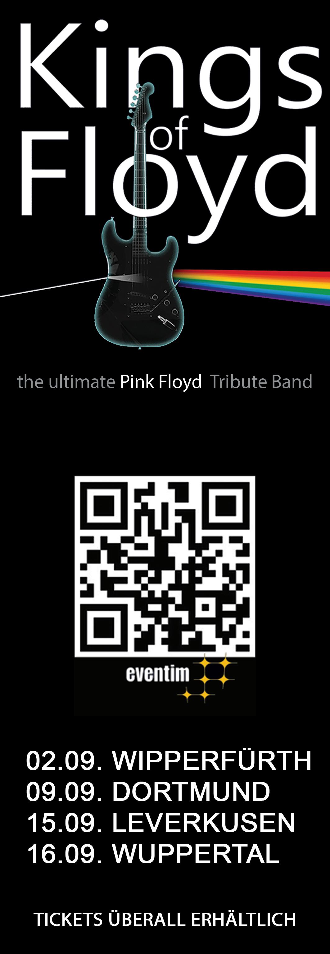 Mit ihrem unvergleichlichen Prog-Rock- und Psychedelic-Sound haben Pink Floyd die Messlatte für Tribute-Formationen hoch gelegt. Doch Bands wie die Kings of Floyd haben dank ihrer Qualität als eine der besten Coverbands ihre Daseinsberechtigung längst bewiesen. Die Gruppe um den britischen Frontman Mark Gillespie versetzt die Fans mit ihren opulenten Konzerten in Begeisterung. Der Sound klingt so authentisch wie das Spiel ihrer Vorbilder. Die effektvolle Live-Atmosphäre weckt Erinnerungen an die legendären Shows des Quartetts um David Gilmour und Roger Waters. Die neue ‚Echoes Of The Past‘-Tour beinhaltet alle Dekaden der Bandhistorie von ‚The Meddle’, ‘Dark Side of The Moon’, ‘Wish You Were Here‘, ‘The Wall‘ und späteren Alben. Über die Jahre hinweg haben sich Kings of Floyd einen ausgezeichneten Ruf erspielt. Ausgefeilte Lichteffekte und die klangvolle Brillanz der großartigen Songs lassen die Herzen der Pink Floyd-Fans höher schlagen. Die Termine von Kings of Floyd in unserer Region sind: 02.09.23 Wipperfürth, 09.09.23 Dortmund, 15.09.23 Leverkusen und am 16.09.23 Wuppertal. [MN]