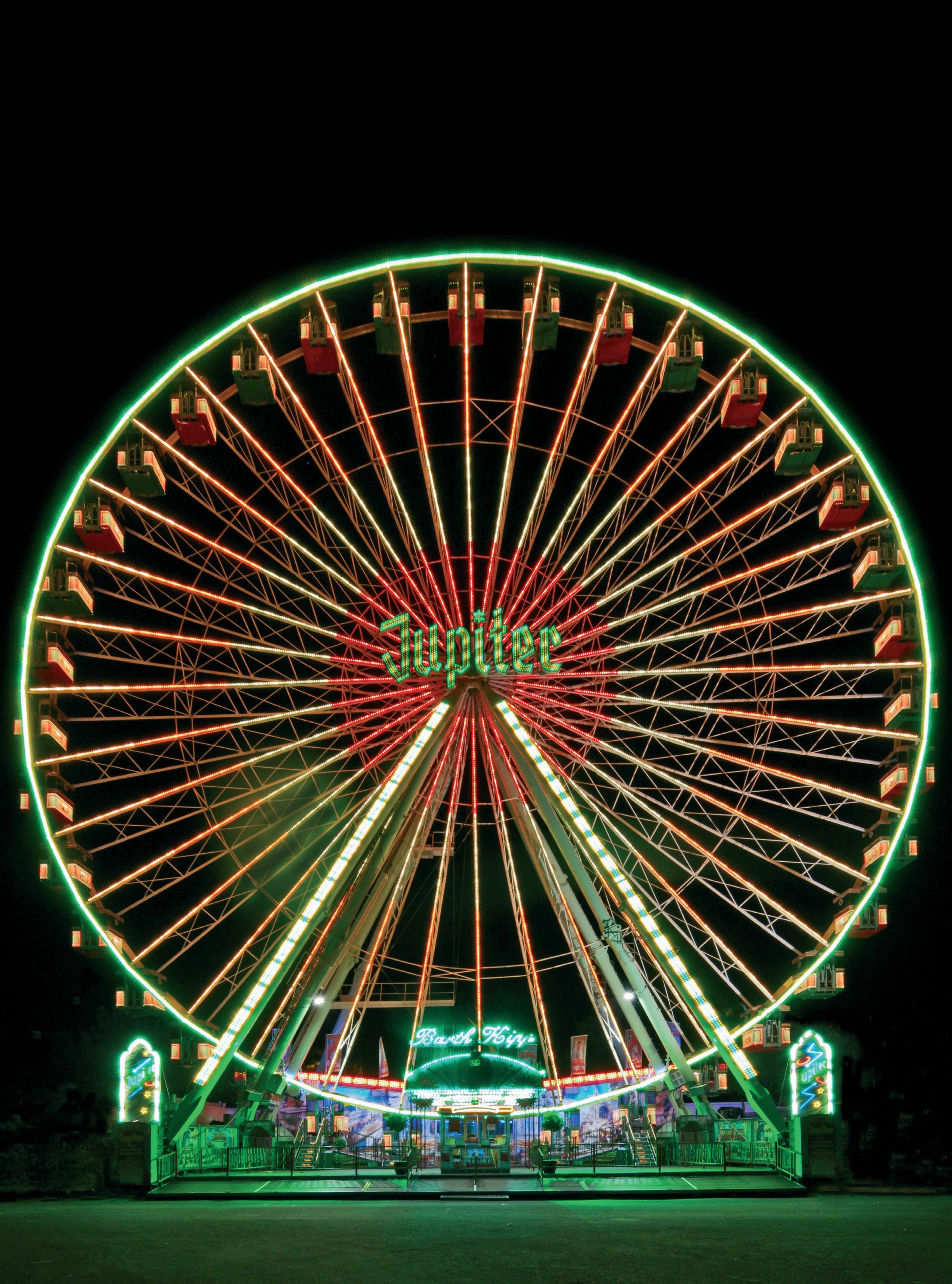 ter) geht es im wahrsten Sinne des Wortes hoch hinaus. Während man im Riesenrad und im Around the World die familientaugliche Fahrt und die Aussicht genießen kann, sorgen im Chaos Pendel die exzentrischen Bewegungen der Arme und die Überschläge der Gondel für jede Menge Adrenalin beim Fahrspaß.