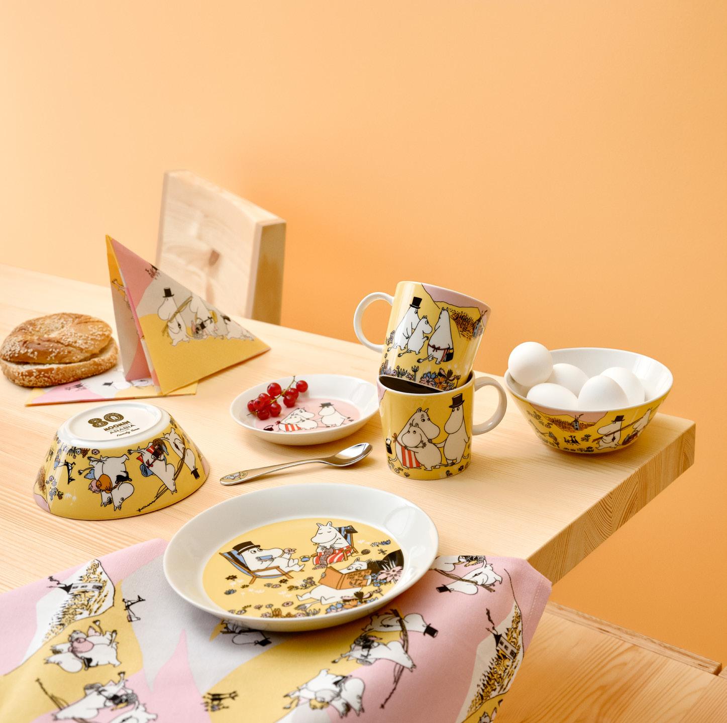 Barnesettet av porselen finnes i to ulike versjoner, både med Mummitrollet og Lille My. Tallerken er formet slik at maten holder seg på tallerkenen, kantene gjør det lettere for barn å spise. Koppens størrelse er perfekt justert for små barnehender. Barnesettet er perfekt som en dåpsgave eller som et samleobjekt.