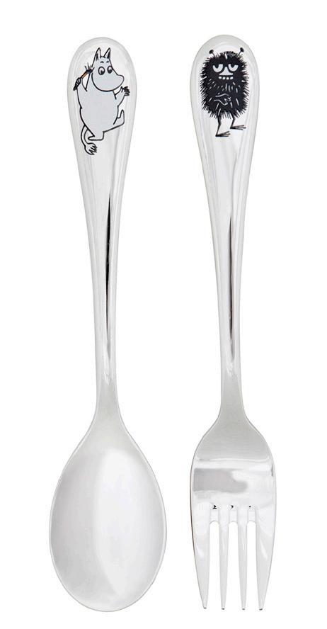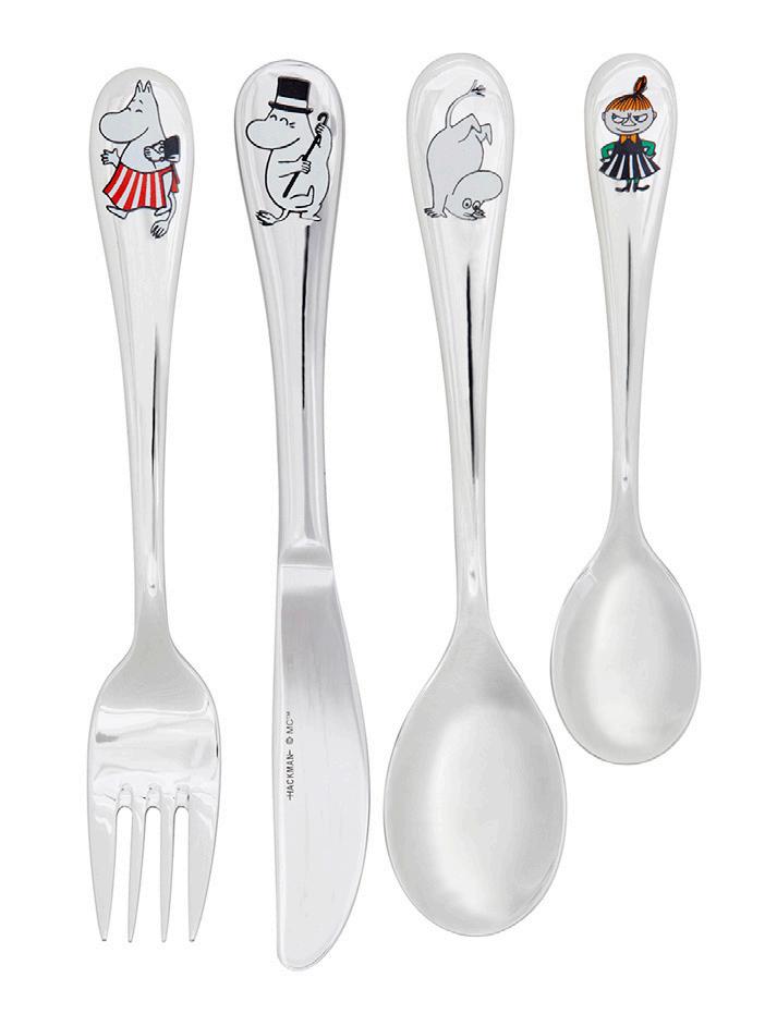 Barnebestikket i rustfritt stål med Mummikarakterer er utformet og dimensjonert for barn.