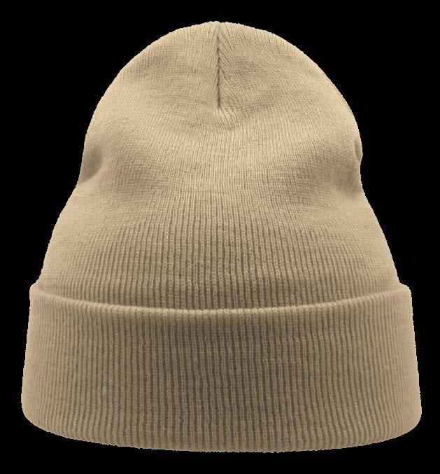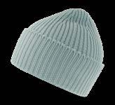 Klassisk hue med ombuk i genanvendt polyestergarn. Dobbeltstrik og cirkulær maskinfinish. Blød og behagelig.