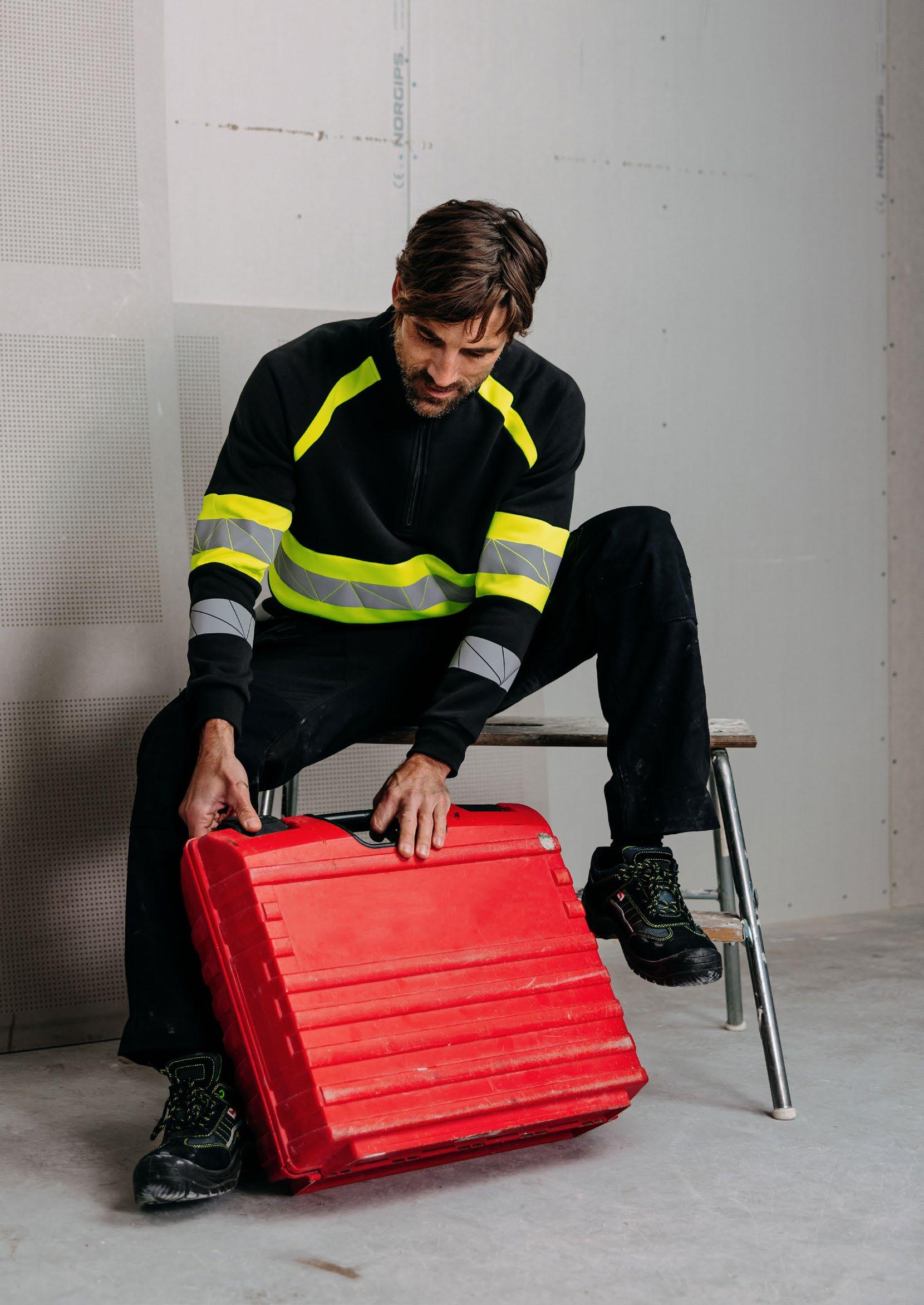 • Safety gule kontrastfelt i sidene, inni kraven og over skuldre/ermer