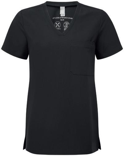 Tunika i pustende 4-veis stretch for god bevegelighet og komfort hele dagen. Holdbar, rynkebestandig og easycare. Moderne passform med vertikale ryggsømmer og sidesplitt. V-hals og lomme på venstre bryst.