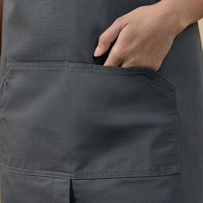 • Midtstilt lomme med nagleforsterkning og stoffhempe