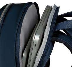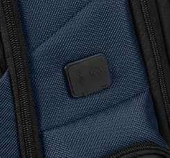 At least 95% by weight of the outer fabric* and interior lining with logo are made with postconsumer recycled PET plastic. (*Outer fabric only on the Spinner 55 Exp Easy Access)