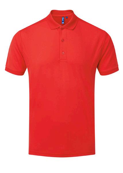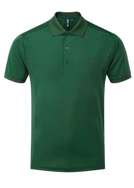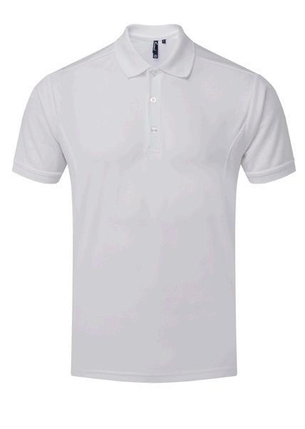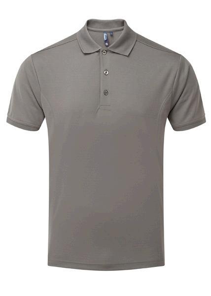 Poloshirt i slidstærkt 100% recycled polyester. Dobbelt pique med fugttransporterende