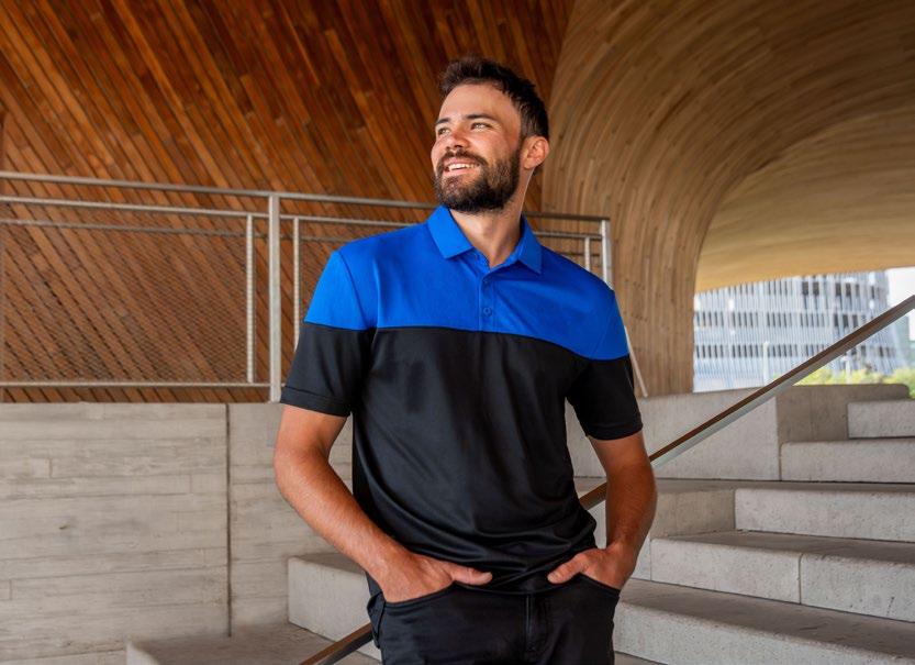 Monterey S/S Polo kombinerer enkelt design med funktionel komfort. Den er lavet af et slidstærkt stof med stretch, der giver god bevægelighed. H2X-DRY® fugttransport holder dig tør, mens en krølfri krave med kravestøtter giver et velplejet og professionelt look. Det specielle 2-farvede design med kontrastfelt over bryst og skuldre, giver et moderne udtryk som skiller sig ud. Med UPF 40+ solbeskyttelse fungerer denne polo lige godt på arbejdet som i fritiden – en stilfuld polo med lang levetid.