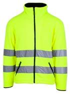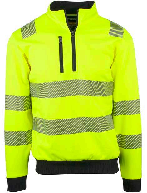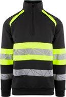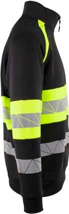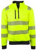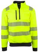 Unisex hi-vi zip sweat i resirkulert polyester med kontrastfelt og elastisk refleks rundt midje og skuldre. Kontrastfelt i sort over skuldre og sidepanel.