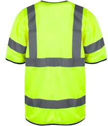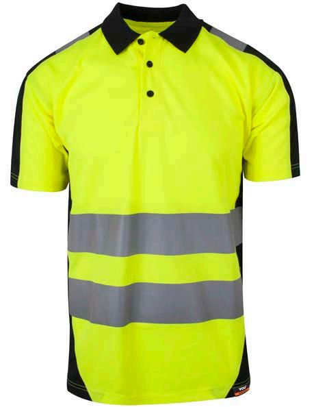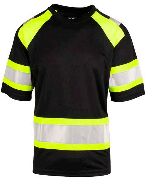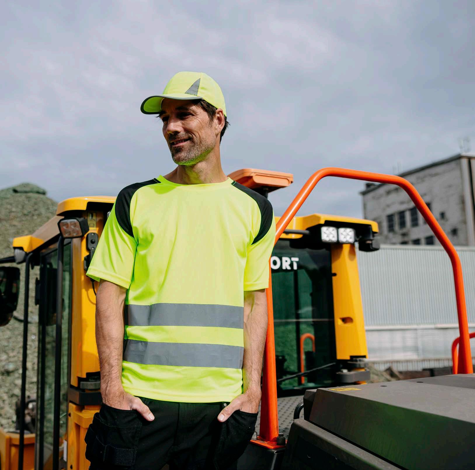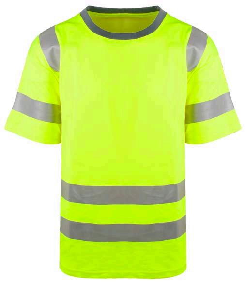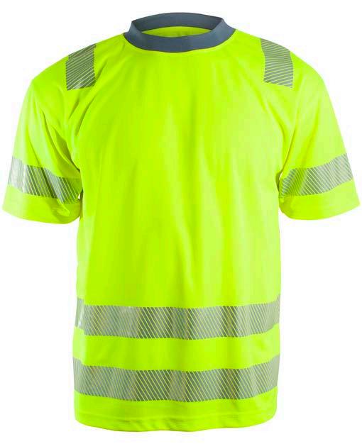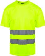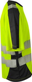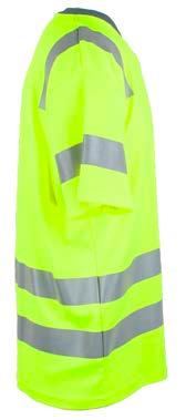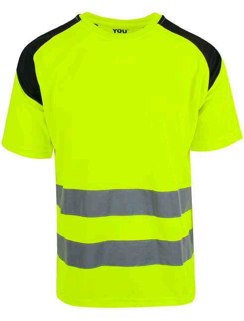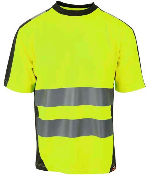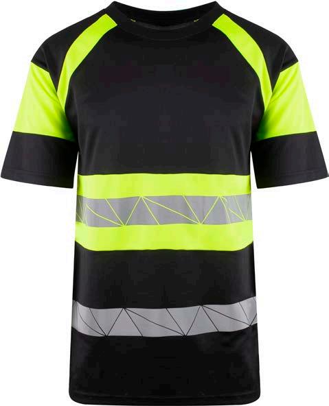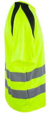 Pro-dry behandlet hi-vi unisex t-skjorte med elastiske heat transferreflekser rundt midje og ermer. Kontrastfelt i sort på hals og sidepanel.