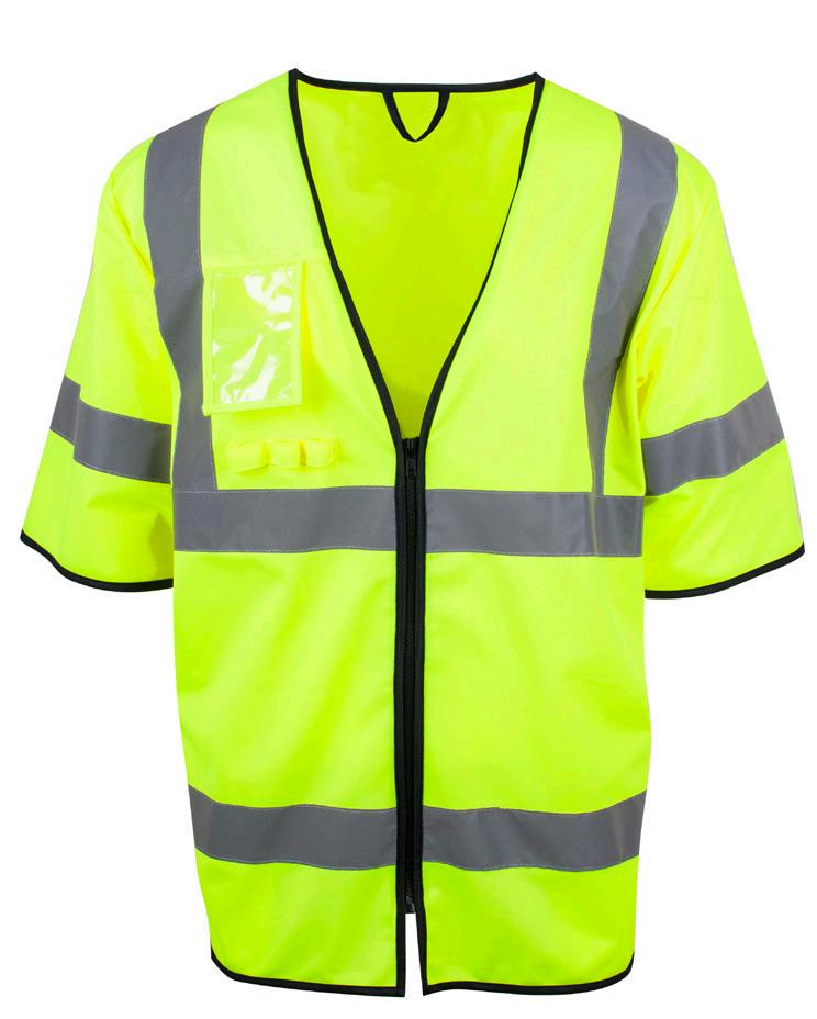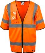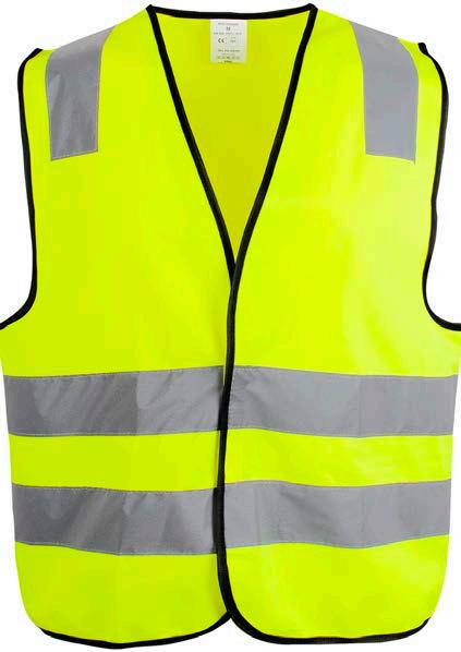 High visibility: CE-merket EN ISO 20471:2013, klasse 2. Kvalitet: 160 g/m². 100% resirkulert polyester.