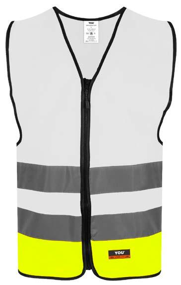 High visibility: CE-merket EN EN 17353:2020. Grunnet sikkerhetskravene til refleksvestene, er plasseringen av refleksen på størrelse 2/3 år noe annerledes.