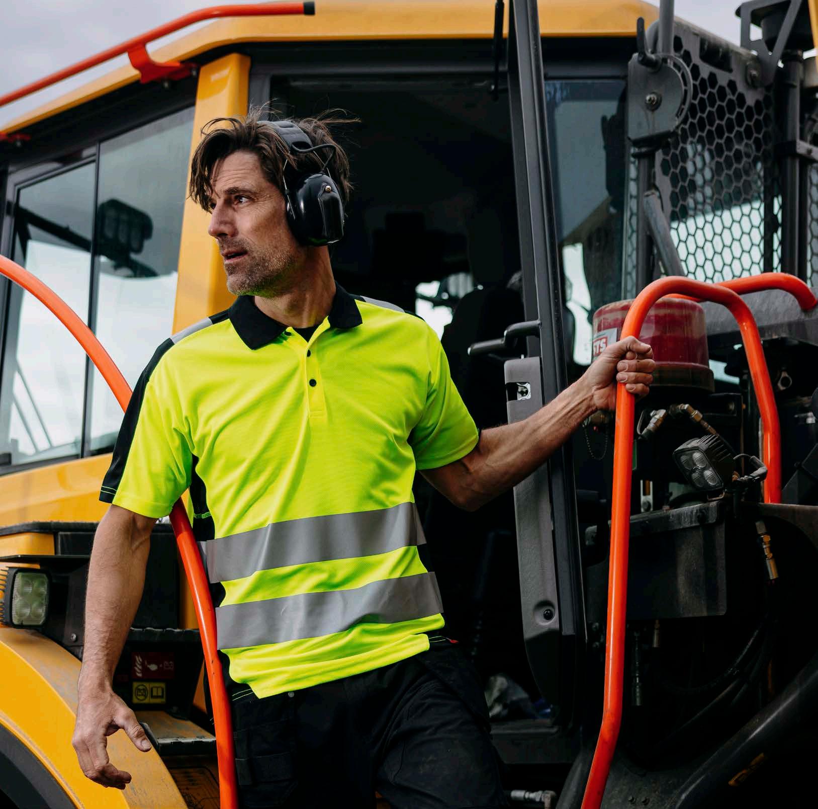 Farger: safety gul, safety orange, safety rød.