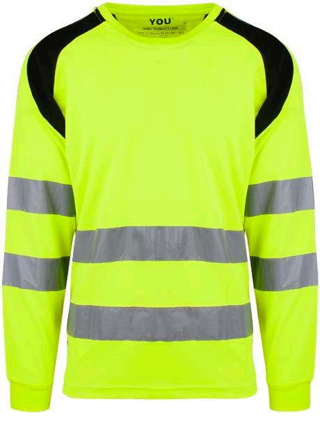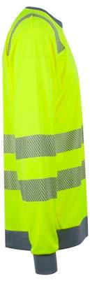 Unisex HI-VI langermet t-skjorte. Elastiske reflekser over skuldre, rundt ermer og midje. Kontrastfarget og elastisk ribb i hals, ermer og liv.