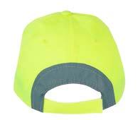 Caps i fluoriserende safety farge med refleksdetaljer. Buet brem. Regulerbar velcrolukning.