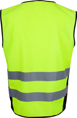 Vendbar unisex markeringsvest i mesh kvalitet med elastisk kontrastpiping i hals og ermer.