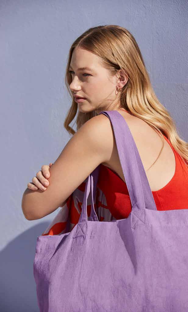 SOFT WASHED JUTE BEACH BAG Handlenett i myk vasket jute med en innvendig lomme og solid webbing hank. Kan bæres for hånd eller over skulderen. På grunn av stoffets natur kan fargene variere.