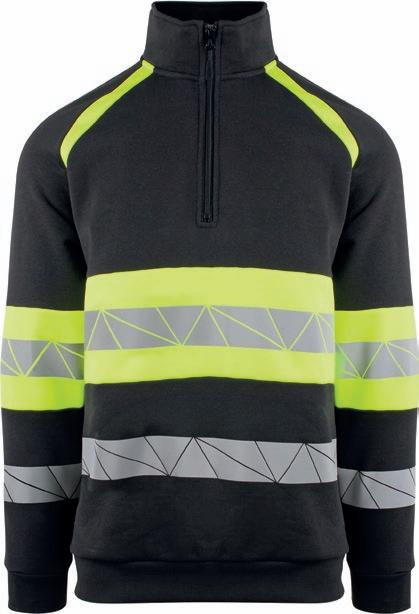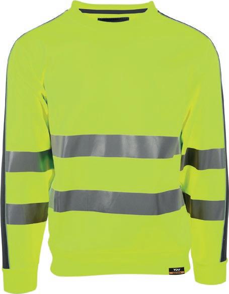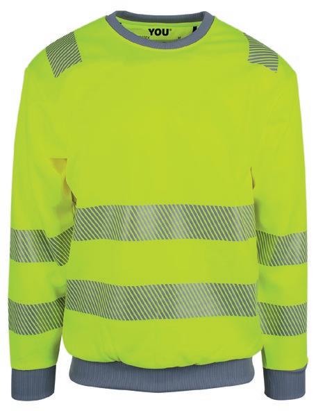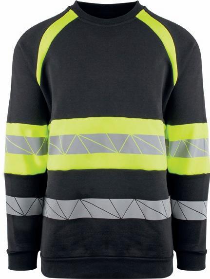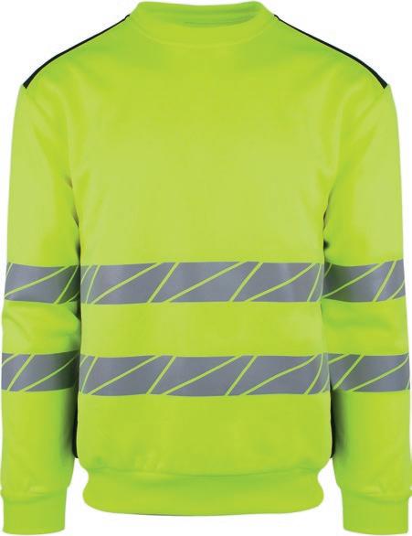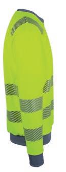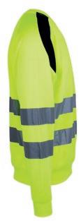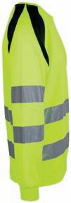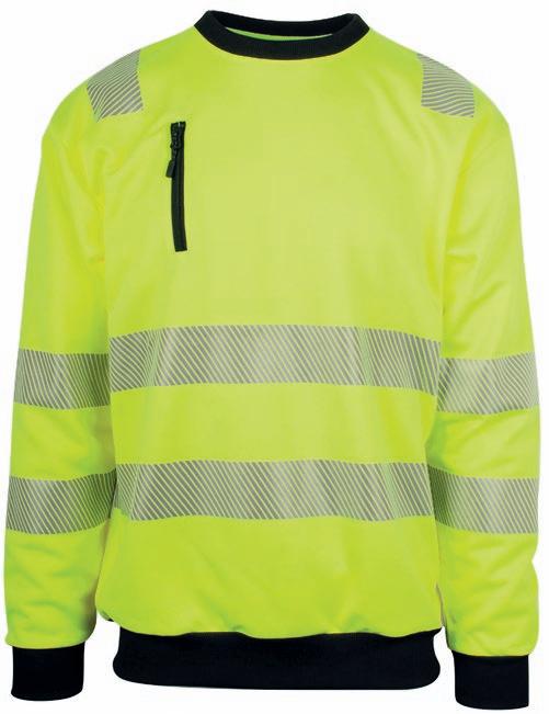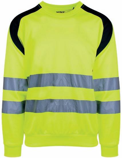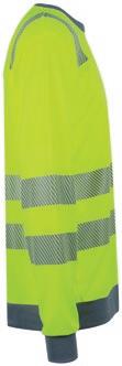 Tofarvet unisex sweatshirt med kontrastpaneler og elastiske reflekser omkring taljen og skuldrene. Reflekterende piping langs ærmerne. CE-mærket EN 20471, klasse 1.