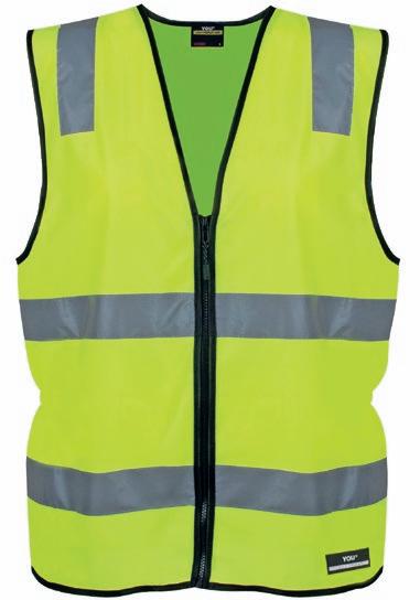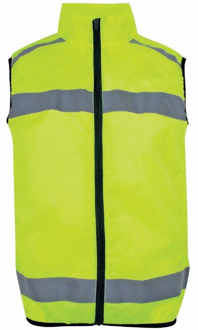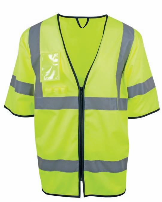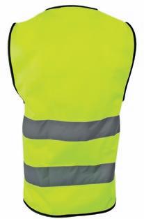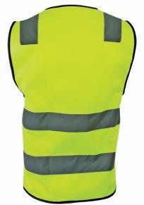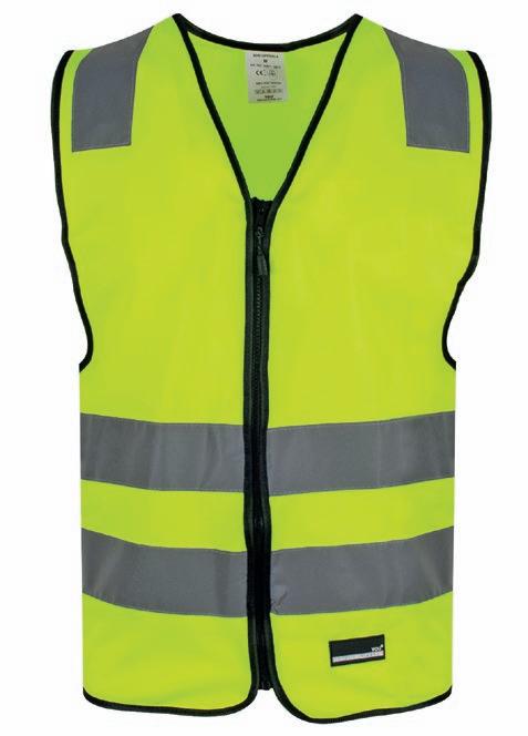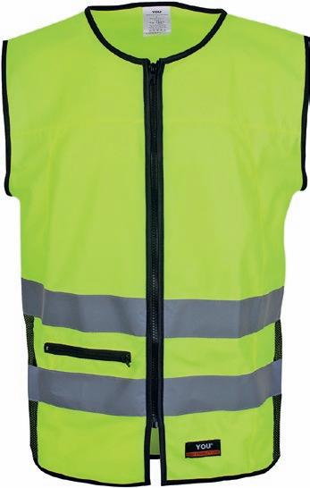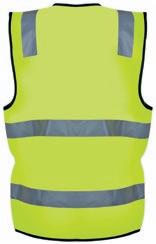 Veludstyret HI-VI vest med to rummelige frontlommer med velcro lukning, ID-lomme og to mindre lommer. Lynlås i front. Påsyede reflekser på skuldre og i taljen. CE-mærket. EN 20471, klasse 1.
