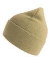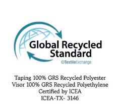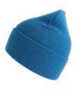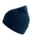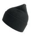 Klassisk hue med ombuk i genanvendt polyestergarn. Dobbeltstrik og cirkulær maskinfinish. Blød og behagelig. GRS-certificeret genanvendt polyester ICEA-TX-3146.