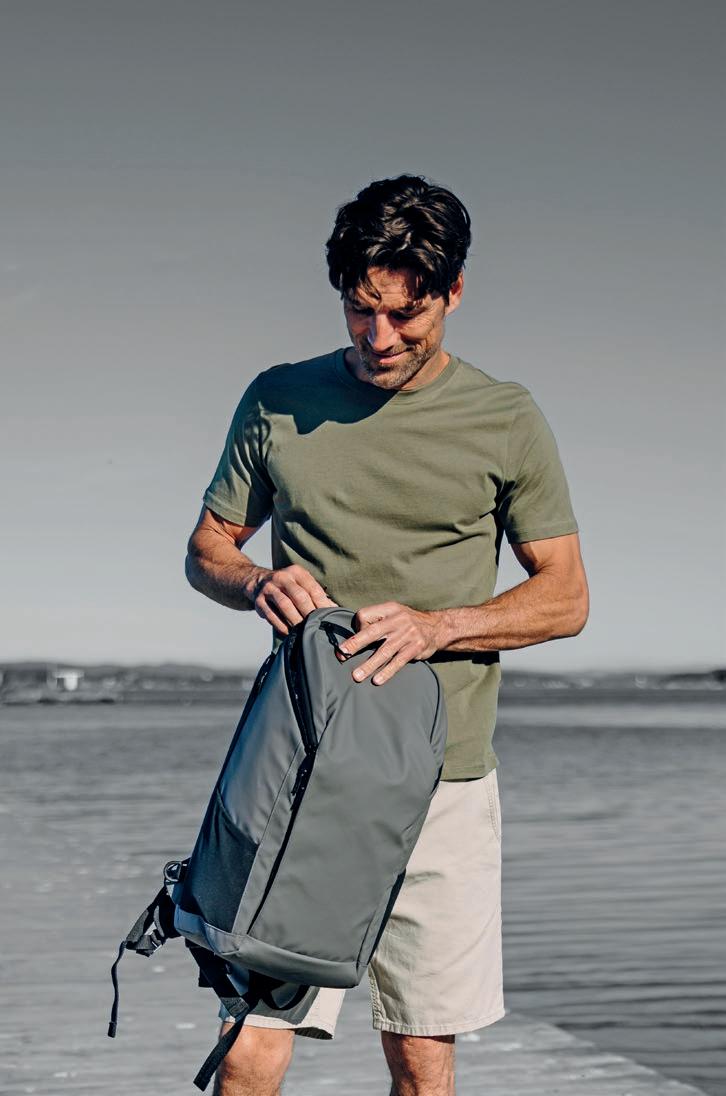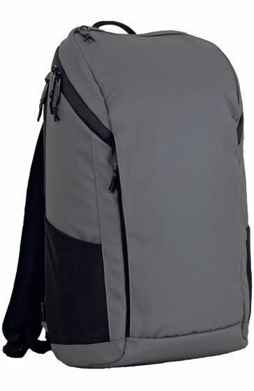 Stilfuld og urban rygsæk i høj kvalitet. Genanvendt polyester med en vandafvisende overflade. Mange smarte løsninger og organiseret opbevaring af værdigenstande. To-vejs lynlåsåbning øverst til hovedrum, pc-lomme med adgang fra både side og top, flere små rum, sidelommer og inderlomme i mesh.