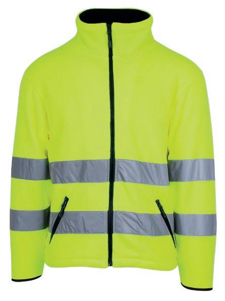 Unisex hi-vi polar fleece jakke. Frontlommer med lynlås. Antipille-behandlet. YKK lynlås. CE-certificeret EN 471, klasse 2.