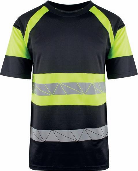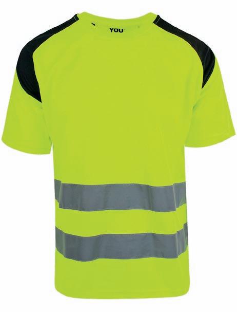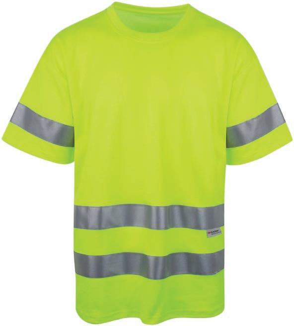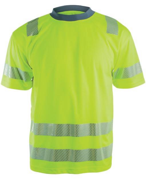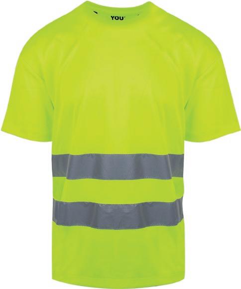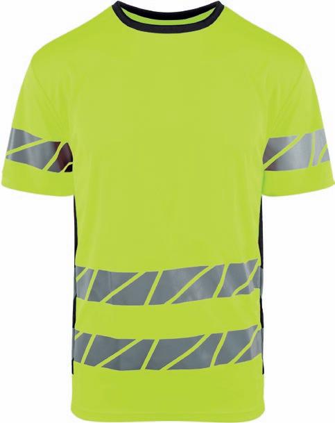 Pro-Dry behandlet unisex t-shirt i fluoriserende farver med påsyede reflekser. Kontrastpaneler på skuldre. Det åndbare og fugttransporterende stof gør den perfekt til arbejde og fritid. CE- mærket EN 20471, klasse 2.