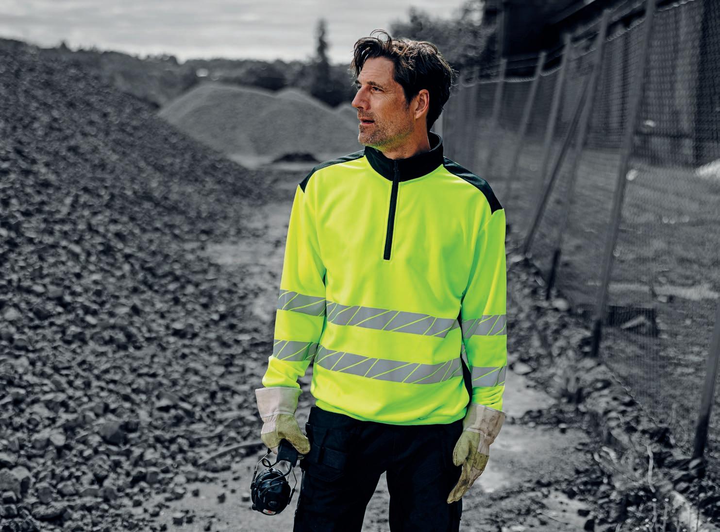 Unisex sweatshirt i fluoriserende farver med påsyede reflekser. 2- lags rib med lycra i alle rib. Børstet inderside. CE-mærket EN 20471, klasse 2. Denne model vil gradvist blive overført til GRS-certifiseret genanvendt polyester. I en overgangsperiode vil begge varianter være tilgængelige, indtil det nuværende lager er udsolgt.