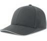 Cap i børstet bomuld lavet af en blanding af genanvendt og økologisk bomuld. 6 paneler. Buet skygge med kontrastpiping. Lav profil. Justerbar lukning med metalspænde.