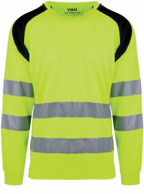 Pro-Dry behandlet unisex t-shirt med lange ærmer i fluoriserende farver med påsyede reflekser som sørger for at du er godt synlig for omgivelsene. Kontrastpaneler på skuldre. Åndbart og svedtransporterende stof gør den perfekt til arbejde og fritid. CE-mærket EN 20471, klasse 2.