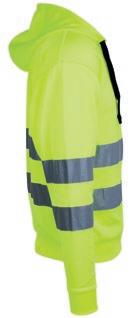 Unisex hættetrøje i fluoriserende farve med påsyede reflekser. Lycra i alle rib og børstet inderside. Snøring og foring i hætte. Lommer i front. YKK lynlås. CE-mærket EN 20471, klasse 2. Denne model vil gradvist blive overført til GRS-certifiseret genanvendt polyester. I en overgangsperiode vil begge varianter være tilgængelige, indtil det nuværende lager er udsolgt.