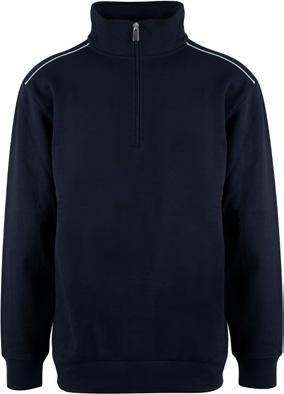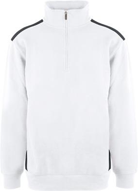 PRO lynlås sweat med kontrastpiping foran på skuldrene og øverst på ryggen. Kontrastfelt over skuldre og sidepanel med tofarvet varianter. Klassisk snit. Ribbede manchetter og linning med elastan. Tåler hård industriel vask og tørring. 60 grader.