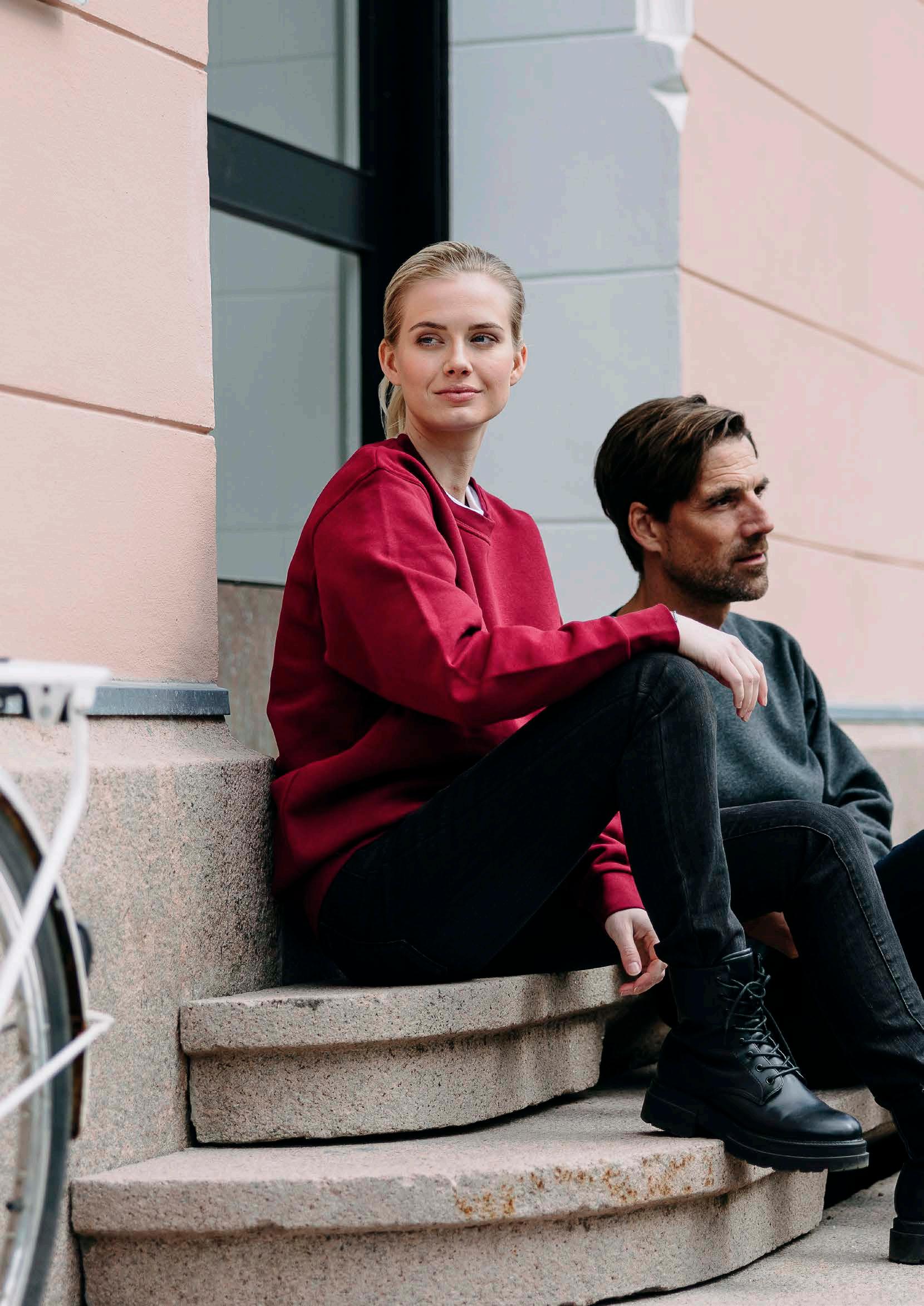 Unisex bedstsælger sweatshirt i 100% økologisk bomuld. Produceret i Portugal. Dobbelt jerseystrikket, 2-lags rib med lycra i rib. Børstet inderside.