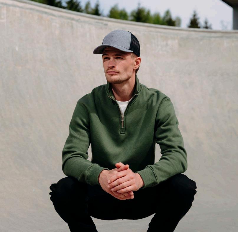 Unisex zip-genser i økologisk bomull og en blanding av resirkulert bomull og polyester, med børstet innside. Med en løsere A-formet silhuett gir den en avslappet passform, komfort og stil.